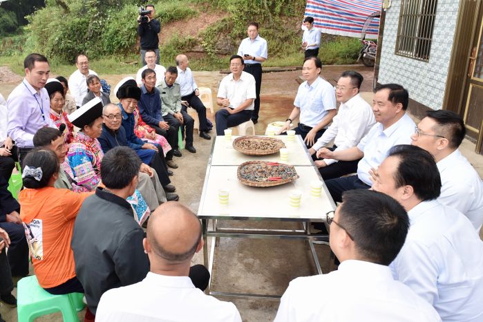 在白臘苗族鄉高峰村,陳肇雄一行實地查看了“支部共建、結對幫扶”機制落實情況,聽取了村委會發揮“黨建扶貧綜合陣地”作用,為黨員活動、技術培訓、農產品上網、鄉村醫療等提供“硬件”條件,幫助提升黨建、民生服務和智慧農牧業的情況介紹,鼓勵大家要用好信息技術手段提高本領。
