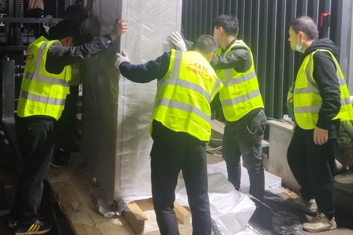 在設備進場時,正趕上太原市連日降雨、氣溫驟降,為了不耽誤項目進度,項目組決定在保證安全的前提下連夜冒雨作業。微信群內的消息剛一發出,“收到”“明白”“馬上到”,一條條簡短的回復從手機上彈出,大家無一例外的準時出現在項目現場,卸貨、搬運、拆包,期間馬不停蹄地投入工作。團隊齊心協力,奮力拼搏,確保了設備按時進場。初冬的寒風陣陣襲來,冰冷的雨水和汗水交織在一起,描繪出團隊奮戰四季度的最美畫卷。