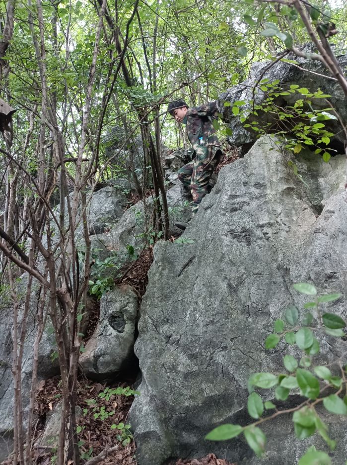 初到現場,沒有測繪人員引路,沒有地形地貌指示,沒有上山蹤跡可循,一切只得靠項目組成員自己去探索、去開拓,用腳步踏出一條條路,用身體力行去征服原始深山。由于缺乏上山經驗,缺少開路工具,大家初始只能借助木棍在灌木叢生、荊棘遍布的深山中開墾出一條路。