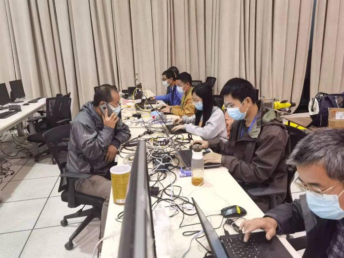 在聯(lián)試現(xiàn)場(chǎng),項(xiàng)目團(tuán)隊(duì)克服水土不服,加班加點(diǎn),積極與總體,相關(guān)聯(lián)試廠家溝通交流學(xué)習(xí)。大家一邊討論協(xié)議規(guī)范,一邊進(jìn)行現(xiàn)場(chǎng)開(kāi)發(fā),一邊還要進(jìn)行接口聯(lián)調(diào),他們用自己堅(jiān)韌認(rèn)真、任勞任怨的工作態(tài)度,展現(xiàn)了“電科人”的風(fēng)采。經(jīng)過(guò)35天的積極奮戰(zhàn),終于順利完成系統(tǒng)第一階段的聯(lián)試工作。